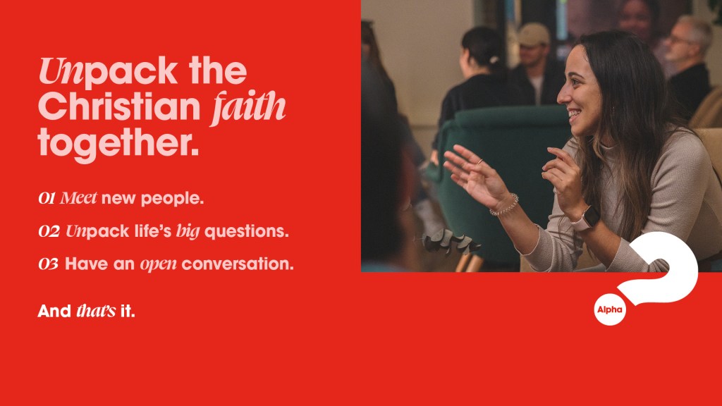 Starting on January 25, 2026 we will be running the Alpha course. This is a safe place to come and discuss some of life’s biggest questions about meaning, purpose, God, faith, and more!